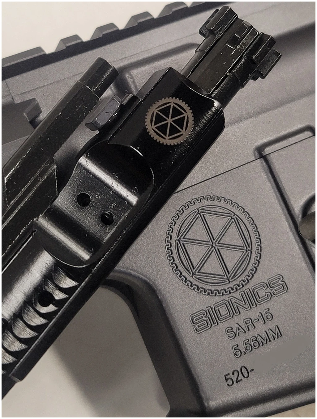 The Bolt Assembly is machined from Mil-Spec Carpenter No. 158® Steel, Shot Peened for increased strength and includes Tool Steel machined Extractor and Ejector, HD Sprinco Extractor Spring and is High Pressure Tested and Magnetic Particle Inspected. Now including the SIONICS Logo Engraved on the Right Side of the Carrier!